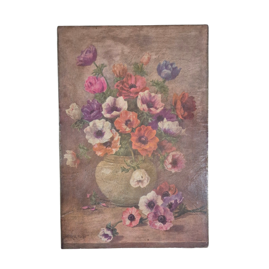 Add a vintage feel to your walls or vignette with this delightful vase of Anemones. The signs of age and wear create the perfect blend of shabby chic and romance.