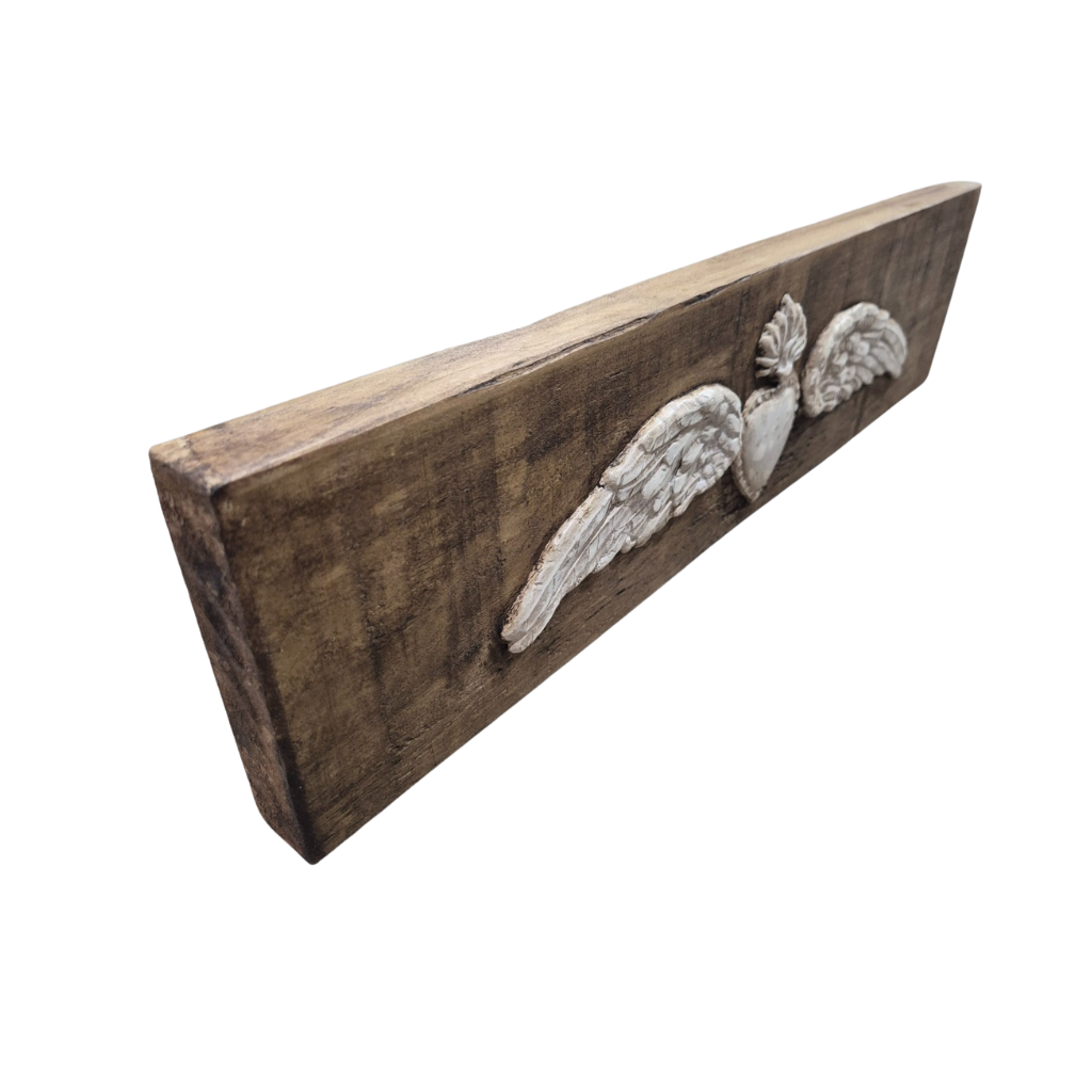 Create a beautiful scene with these angelic wings, ideal for above an entryway or to adorn your wall. Lovingly handcrafted on wood, full rustic and charming French flair.