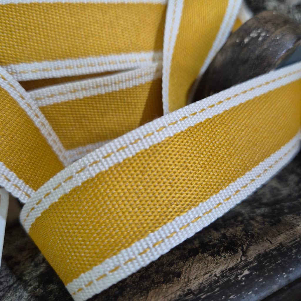 A classic cotton ribbon with a wide stripe and a ticking stripe down each side. Ideal for sewing crafts, junk journals, slow stitching and scrapbooking projects. Embellish cushions and home decor projects. This sandstone colour is sits perfectly between grey and taupe.