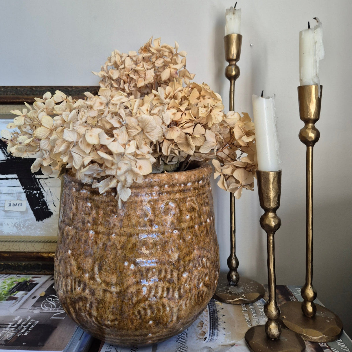 Bring texture to your potted greenery with this Middle Eastern-inspired planter pot featuring intricate textures and patterns reminiscent of ancient artifacts. Crafted from terracotta and finished with a crackle glaze, it adds timeless elegance to any space.