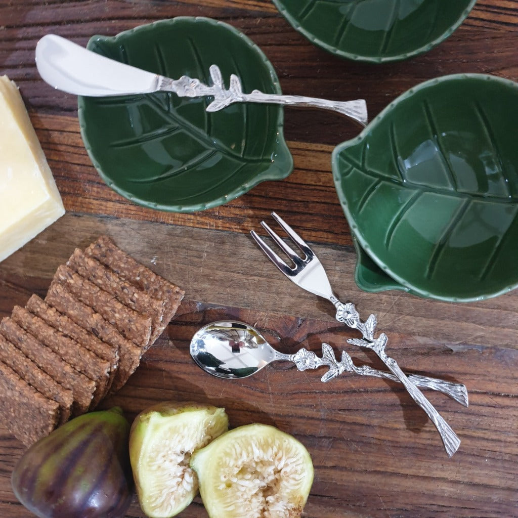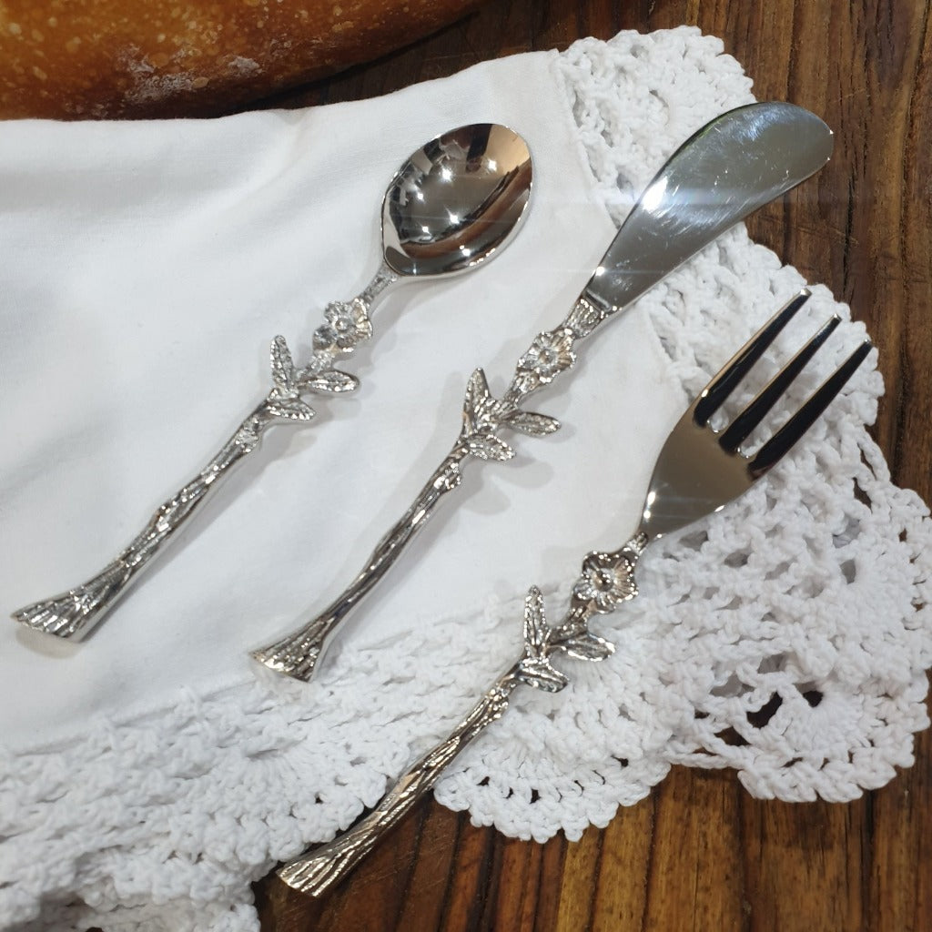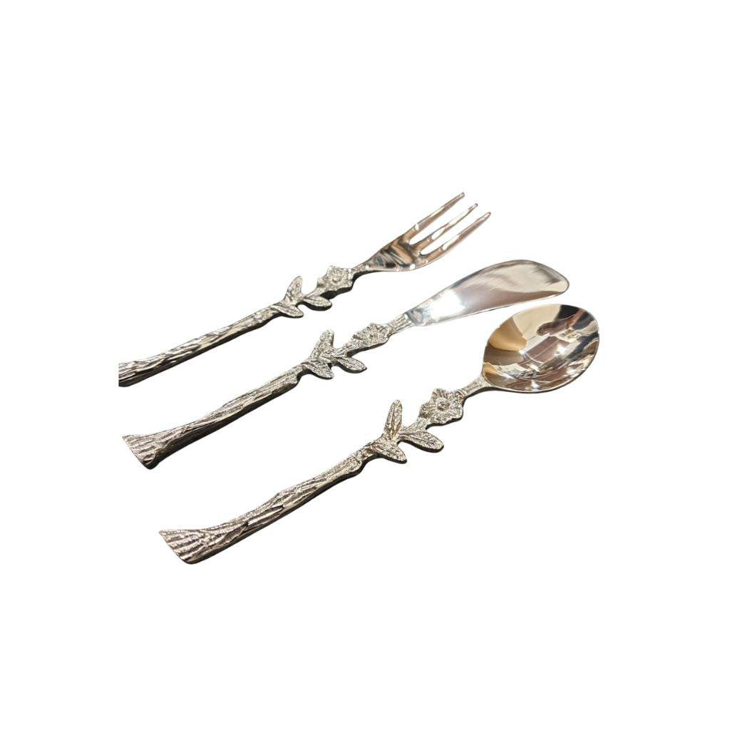 A gorgeous trio of dainty platter utensils adding a touch of whimsy and delight to any gathering and platter. Perfectly crafted for serving your favorite condiments, cheeses or mini bits.