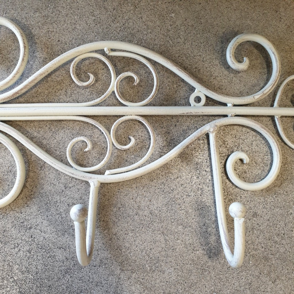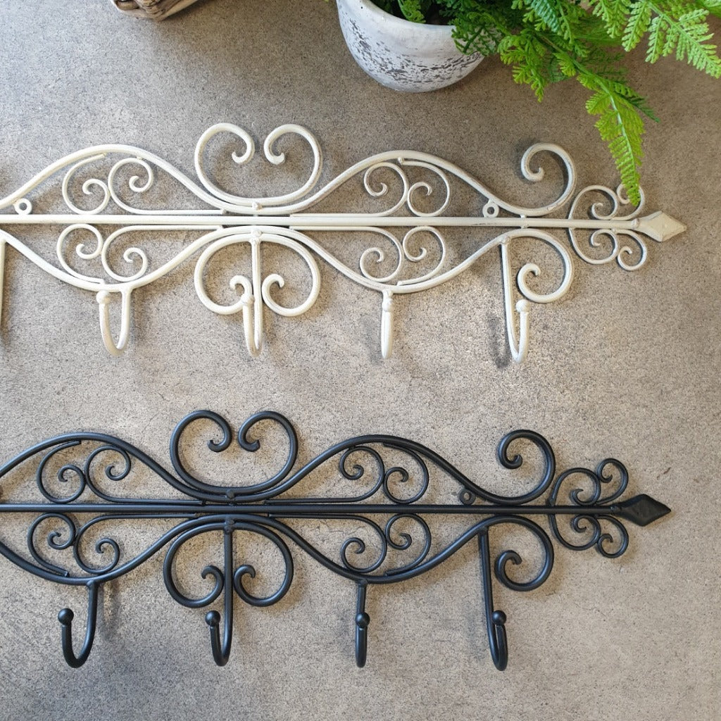Made of wrought iron with an aged paint finish. The antique cream has a shabby chic French Country feel, while the black iron has a plain black finish.