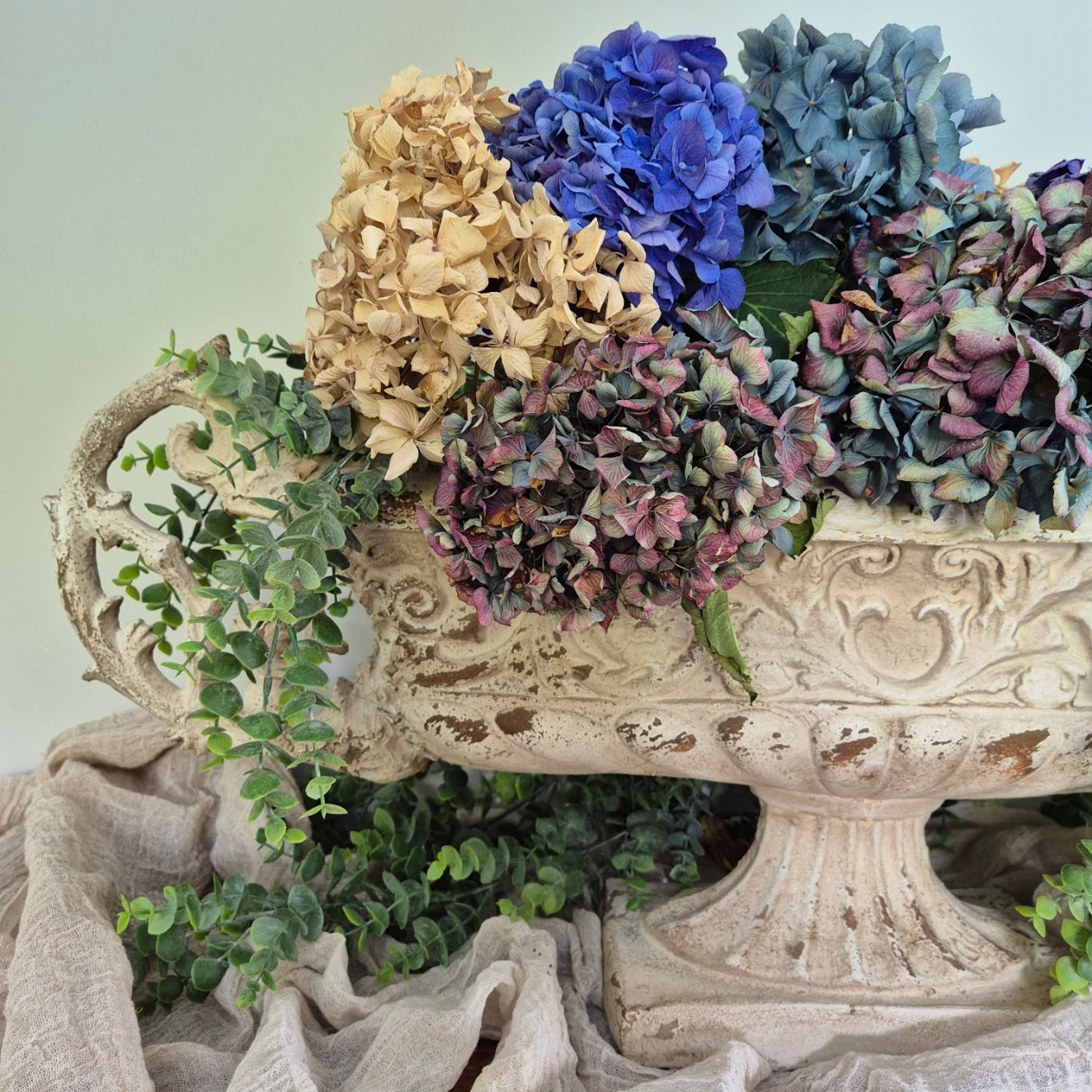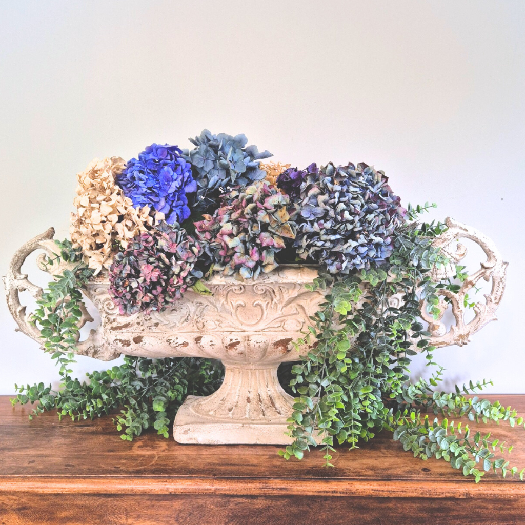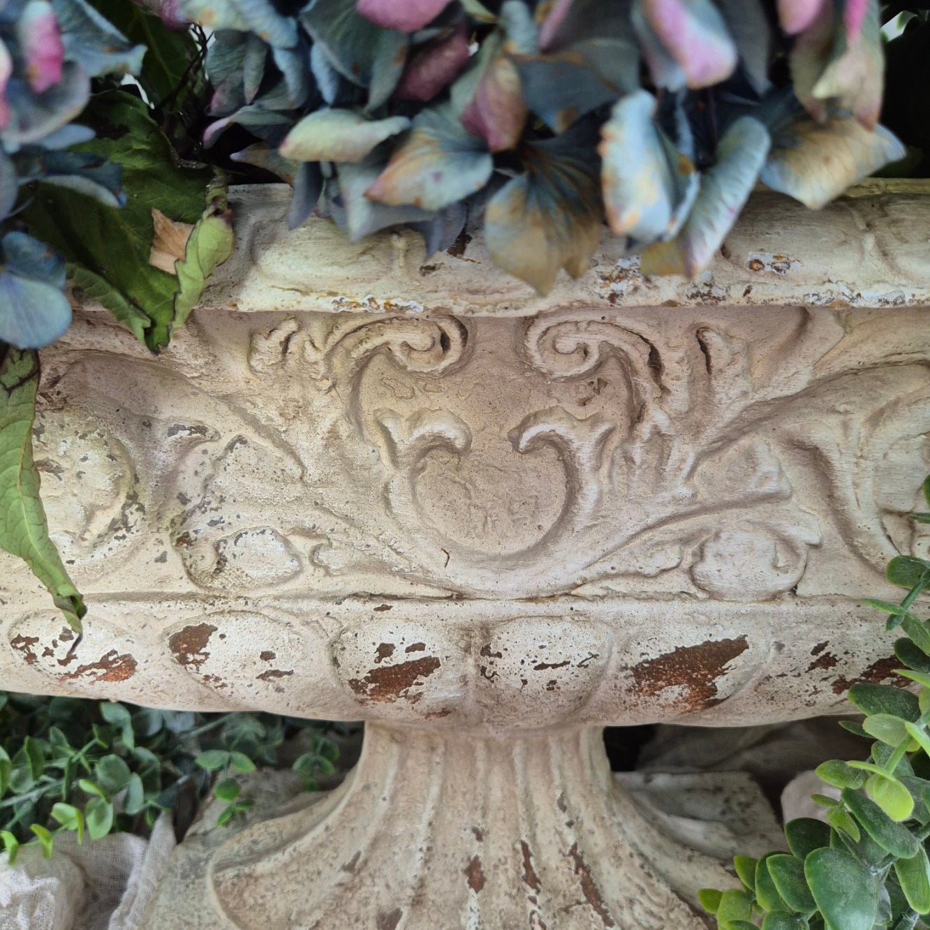 An exquisite statement vase, spectacular as a stand alone urn, or fill it with your favourite blooms. This piece is large and oversized with a beautiful aged patina.